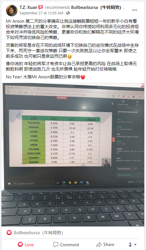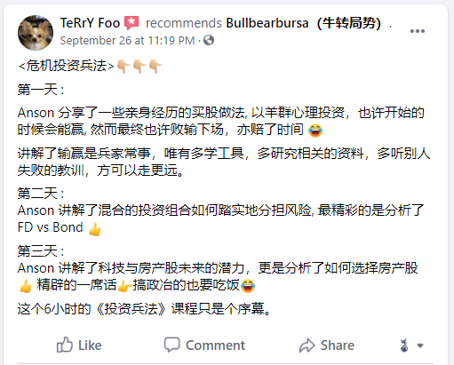 合适的,因为在这分享会里你将会知道如何在危机里寻找好的股票。还有,每个人的投资方案/策略都不一样,可以参考 Anson 的投资兵法。